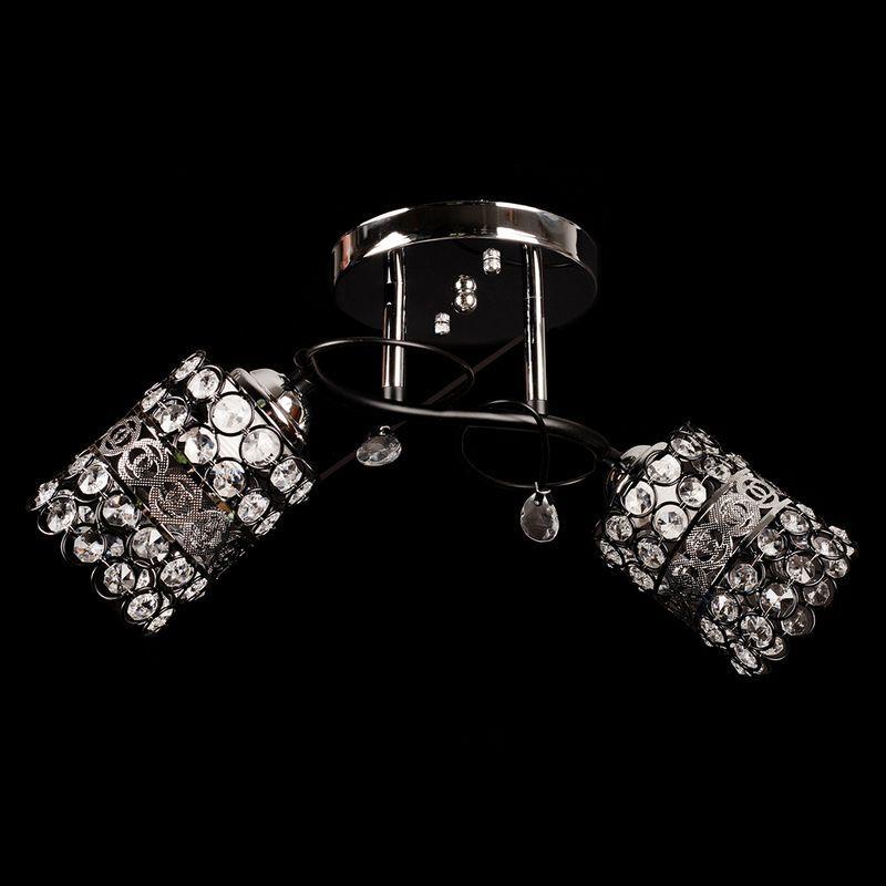 Люстра потолочная на два плафона под лампу е27, цвет каркаса хром, материал плафонов - хрустальные камни